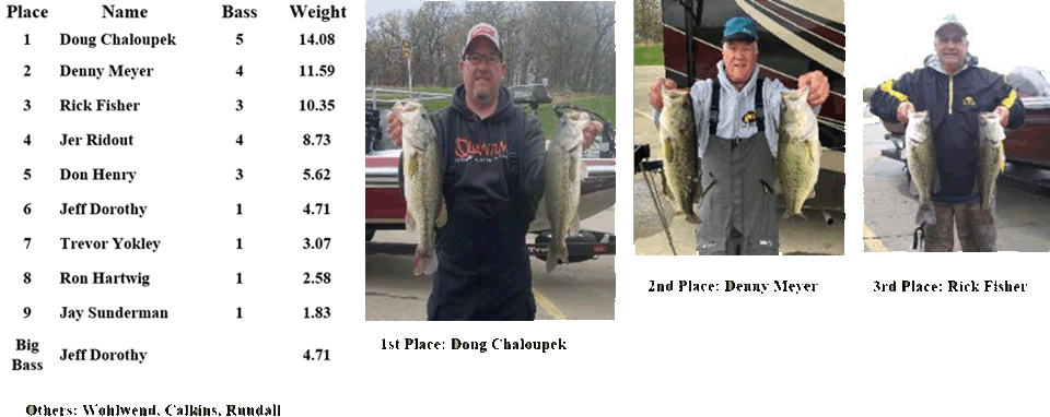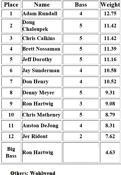 April 27 - Rathbun May 18 - Sugema June 23 - Pool 9 July 13 - Icaria July 14 - Anita August 17 Buddy Tournament - 12 Mile September 15 - Green Valley