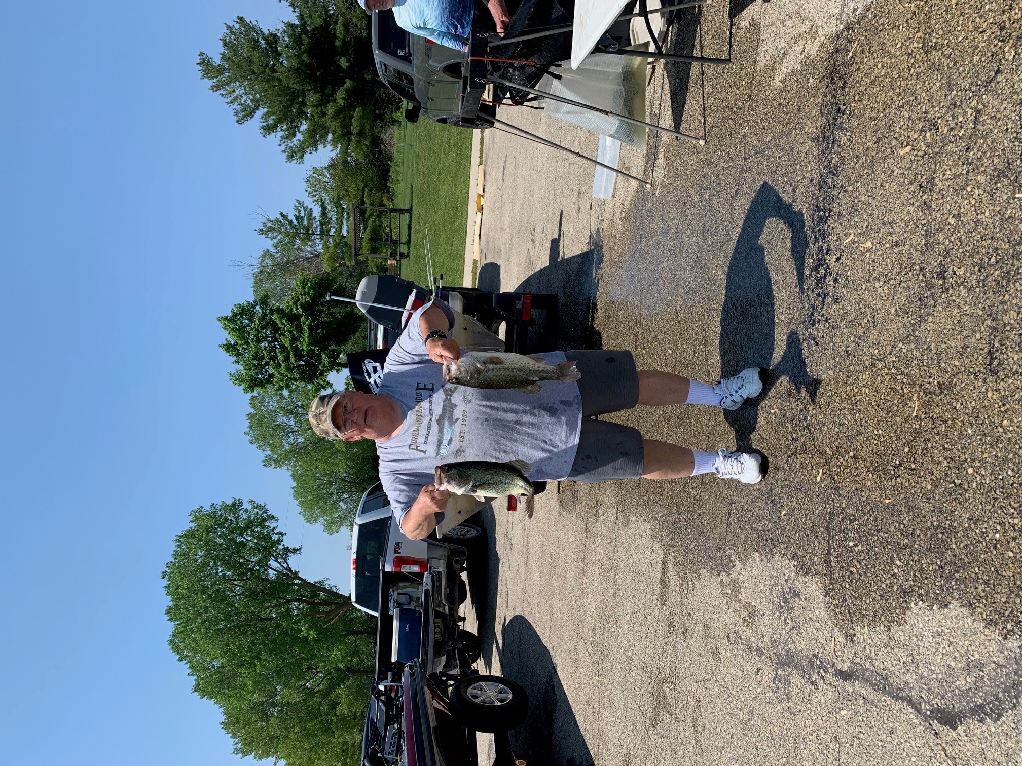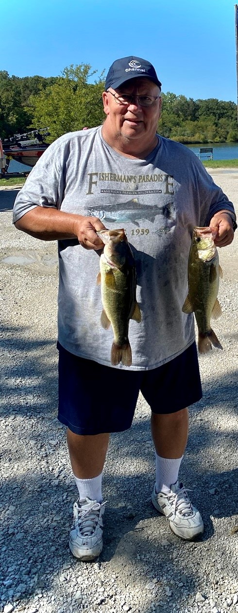 Kelly Maxfield with 2 of his 5 fish wieghing 14.38 lbs for the win at Badger Creek